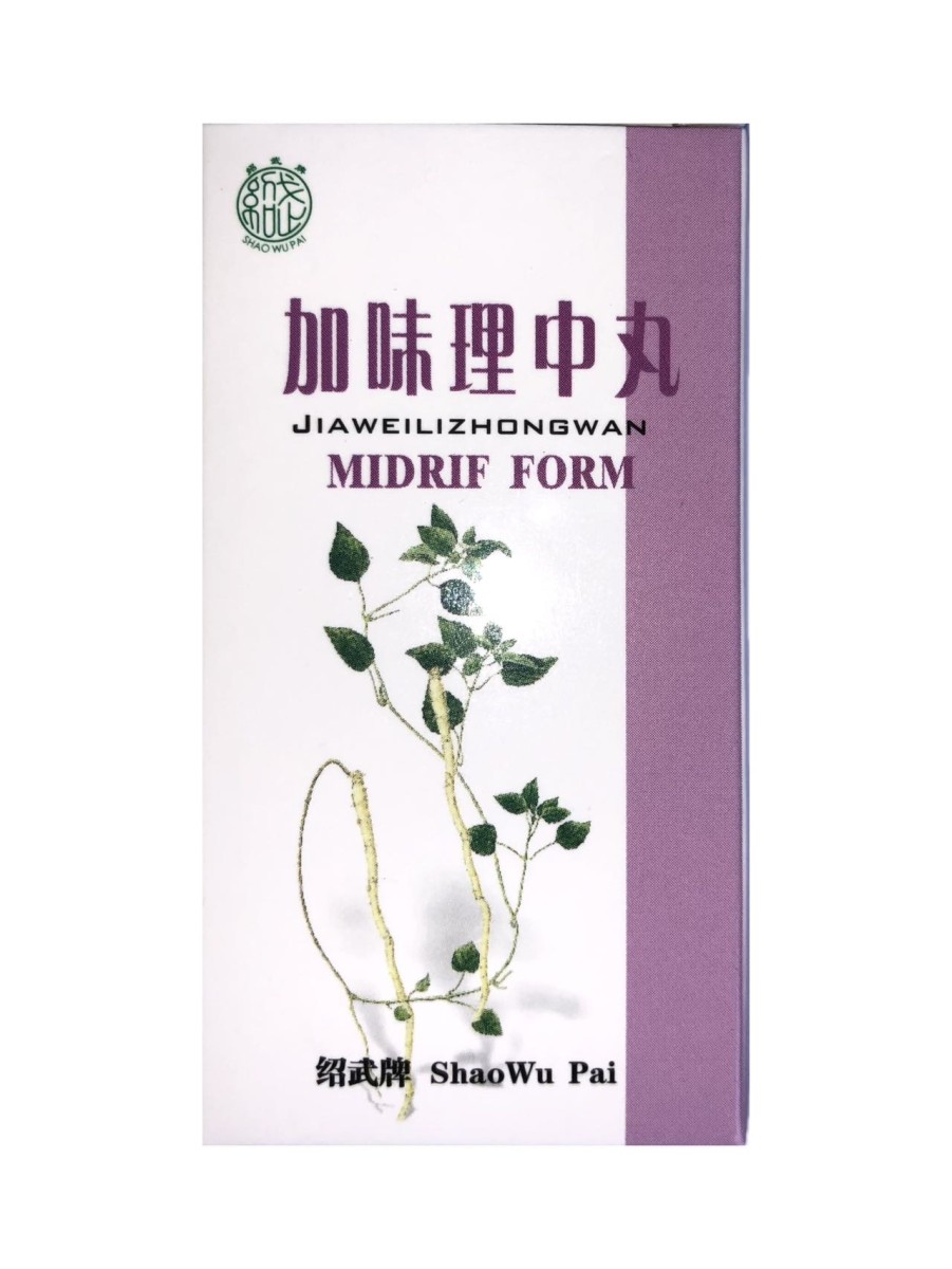 Jia Wei Li Zhong Wan 加味理中丸 Midrif Form Article number 80227 Jia Wei Li Zhong Wan 加味理中丸 Midrif Form In stock Weight: 0,07 kg 淀粉/Dextrine5%党参/Radix Codonopsis40%甘草/Glycyrrhiza Radix15%干姜 Rhizoma Zingiberis Officinalis15%白术 (炒) Rhizoma Atractylodis Macrocephalae25%